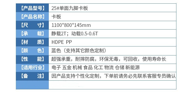 本店產(chǎn)品常規(guī)庫(kù)存為全新料藍(lán)色塑料托盤,周轉(zhuǎn)箱,周轉(zhuǎn)籮,化工桶,中空板材及部分高性價(jià)比黑色一次性出貨產(chǎn)品。如需要其他顏色請(qǐng)聯(lián)系客服對(duì)接處理。因產(chǎn)品規(guī)格較多,未能全部上至店鋪,如店中沒(méi)有您需要的規(guī)格尺寸也請(qǐng)聯(lián)系客服。希望能解決您的問(wèn)題,我們竭誠(chéng)為您服務(wù)!!!