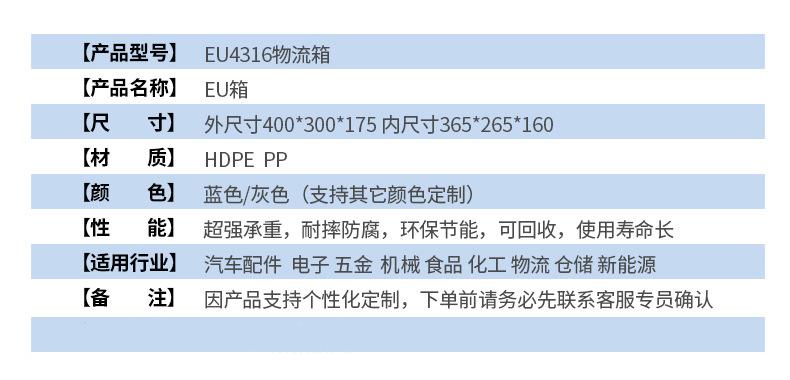 上一篇:東莞直營廠家eu箱汽配行業專用箱倉庫物流周轉箱加厚新料eu汽配箱
